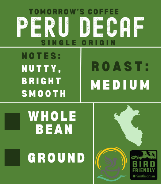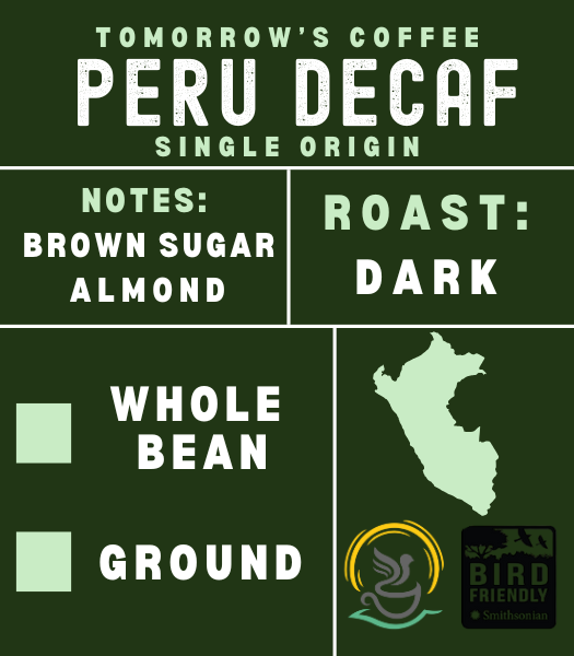 Go au naturel with our Peru, Decaf, Dark Roast coffee! Made with organic, decaffeinated beans, this fair trade and Smithsonian bird friendly certified brew offers a smooth, dark roast flavor with a Peru single origin. Enjoy the best of both worlds: caffeine-free and environmentally conscious.